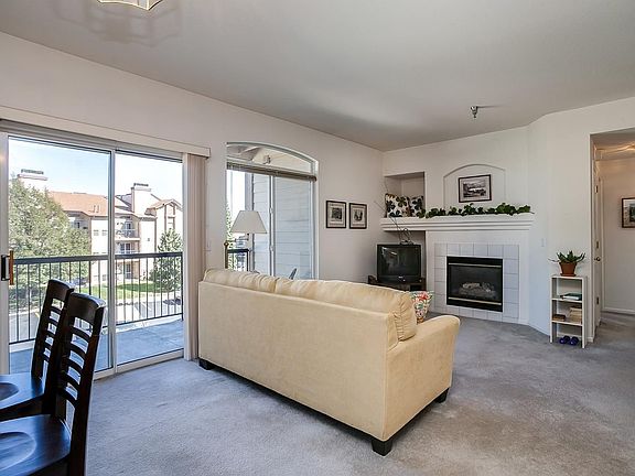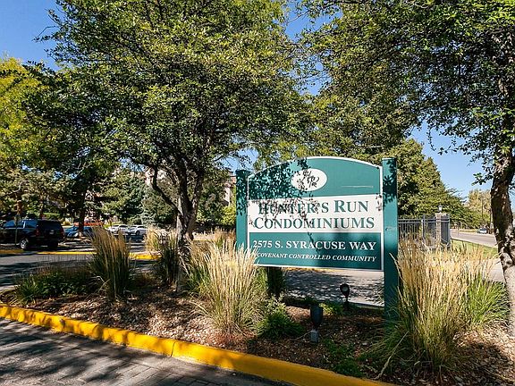 Cherry Creek Schools! Well loved and maintained end unit with bright natural light! Nice floor plan with 9' ceilings and lots of closet space. Open living room/dining room with cozy fireplace with tile surround. Walk-in laundry off kitchen. Master bedroom with walk-in closet, dual vanity full bath, and soaking tub. Second bedroom with adjacent full bath. Additional features are a sprinkler (fire) system in the unit, newer dishwasher, central air conditioning, security screen door, storage closet off the covered patio. Beautiful community with mature landscaping, relaxing pool and hot tub. Great property tucked away but not far from downtown, DTC, Bible Park, and Highline Canal bike trail. Low HOA fees. Plenty of surface parking. Great location and a great price!
