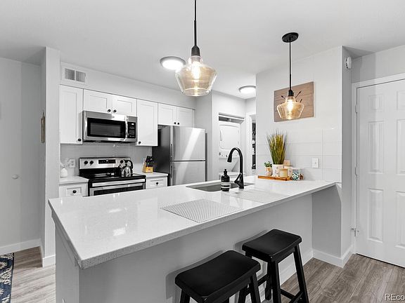 Move right in to your dream condo that has been thoughtfully updated & is located adjacent to the community pool! You are welcomed to a spacious, open floor plan w/ a cozy fireplace & high-end, modern finishes throughout. The private patio is flooded w/ natural light & offers an invigorating space to re-energize. At the end of the day, retreat to the large master suite featuring ample closet space & an adjoining bathroom that also connects to the common living area. Updates include new flooring, self-close cabinets, quartz, SS appliances, new fixtures & fresh interior paint. Conveniently located near parks, restaurants & shops- close proximity to I-25, Parker Rd, and I-225 for easy access to anywhere in Denver! Welcome HOME!