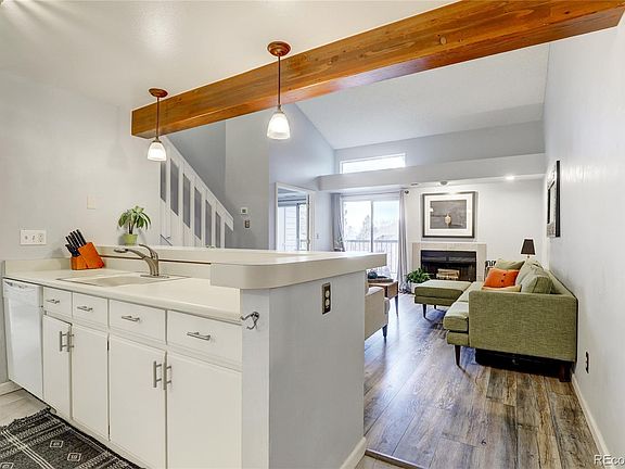 Updated and modern penthouse condo in Hunter’s Run. Spacious 2-story floor plan with vaulted ceilings and a skylight. Newer luxury plank vinyl floors, complement the updated tile floors in the kitchen and bath. Many of the appliances are newer including a recently replaced central air conditioning unit. Large primary bedroom with double door entry, two closets, separate balcony access, and private access to the full bath. Open kitchen with refrigerator, pantry, and custom lighting. Convenient in-unit laundry closet with stackable washer and dryer included. Upstairs has a roomy loft/2nd bedroom with skylight and an adjoining storage area and cozy private office space, accented with wood plank wall decor. The balcony is a relaxing place to grill, enjoy outdoor dining, or have a cup of coffee. Hunter’s Run offers a great location within South Denver, while located in the Cherry Creek School District, and go hiking and biking along the nearby Highline Canal Trail. A community pool, clubhouse, and plenty of open parking are included with the low HOA dues.