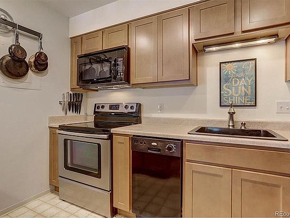 Wow, location and affordable! Hunter's Run Condominiums ground floor, 2 BR/1 BA condo. Perfect setup for a work from home professional, first time home buyer or investor. The open living room area flows seamlessly into a dining area and kitchen. The well designed updated kitchen has rich high end wood cabinets, stainless steel and black appliances, built-in island with lots of storage, electric outlets, pull out shelves for pots and pans, pull out trash, extra large utensil drawer and lots of lighting. Both bedrooms have custom closets to keep you organized and clutter free, and the second bedroom also has a built-in bookshelf. Updated window and sliders, front door and storm door. Two sets of sliding glass doors, one off the living area and one off the master bedroom that lead to an oversized covered patio where you can relax and enjoy your morning coffee. Large locked storage space off patio with shelving on one side and furnace room with additional storage on the other side. Newer furnace/AC unit and new hot water heater, and water shut off valve has been relocated for accessibility. In unit washer and dryer combo. Reasonably priced HOA covers pool, hot tub, water, sewer, building/grounds maintenance, trash and snow removal. Plenty of unreserved parking for you and for friends to visit. Pet friendly complex with plenty of grassy areas for walks with parks and trails nearby. You'll love this safe central location. The High Line Canal is just steps away for walks or bike rides straight to Cherry Creek State Park, and close to James A. Bible Park. Convenient shopping with Whole Foods, Target, Safeway, King Soopers, Sprouts and Walmart all nearby as well as lots of great restaurants. Easy access to I-25, I-225, and just minutes to DTC or Downtown with bus stops and light rail stations nearby. Hurry this one won't last! Note condo does need flooring throughout, flooring allowance will be considered with the right offer.