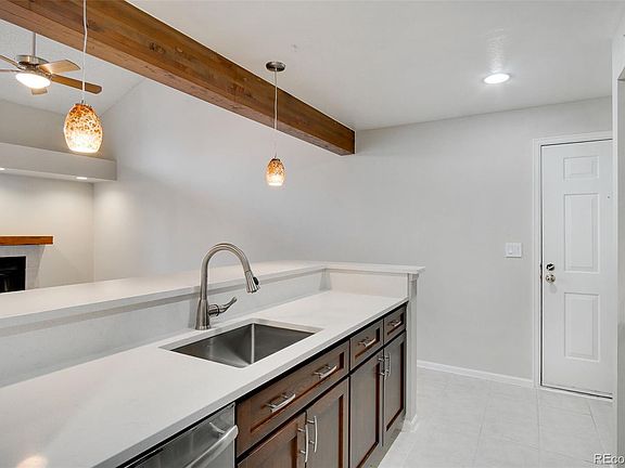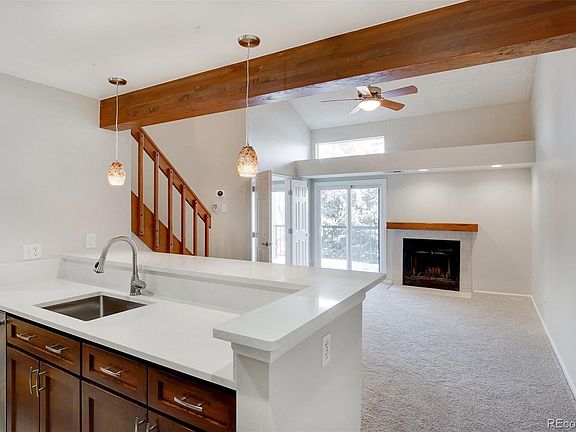 Don't miss out on this opportunity to own a rare top floor unit in Hunters Run! This updated condo features brand new quartz counters, new carpet and fresh paint throughout! The kitchen boasts plenty of cabinet space, tile flooring, a breakfast bar and all stainless steel appliances. The cozy living room has a wood burning fireplace and vaulted ceilings, along with beautiful French doors leading to the first floor master suite. Upstairs in the loft you'll find the second bedroom and a large walk in closet, which some owners have converted to a 2nd bath! This unit stands out as being one of the most updated and cleanest units to list in Hunters Run, and we do not expect it to last long at this price and with such a low HOA. The Highline Canal Trail is across the street, Bible Park is a short walk away, and you're only a brief drive away from Whole Foods. It doesn't get much better than this!