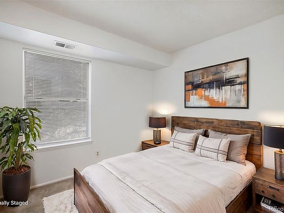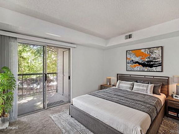Move in ready, and with rave reviews. Open House Saturday Nov. 16th 1:00-2:00 or Call the Agent that knows the most about the Condo, the Listing Agent! Located in Arapahoe County, with the highly rated Cherry Creek School District. Close to DTC and Cherry Creek. Be warm & snuggly on a cool day with the updated Marble Fireplace surround that reaches all the way to the living room ceiling. Custom built-in Art Niche will display your favorite raw gemstones, colorful items etc. Newer Central Air Conditioning (2022) and Newer Furnace! Newer kitchen cabinets, newer kitchen counters. This home is virtually staged. The second bedroom has been staged as an office, however it does have a closet and can be used as designed a 2nd good sized bedroom. Enjoy the newer custom kitchen back splash, under cabinet lighting, newer cabinets & eco friendly Bamboo plank flooring. Stacked washer and dryer Laundry in its own closet with doors. Low monthly HOA under $300! The bathroom has had an update in the bath and shower area. Storage Space that locks on the exterior of the large 90 sq foot balcony. Plentiful parking. Double sliding glass doors make for easy Balcony entry from the primary bedroom or the living room. This 1st floor home is surrounded by massive trees protecting it from summer sun & adding privacy. The balcony storage is large enough for your Bike(s) with bike hooks included.) Ride your bike, walk, or run for miles on the Cherry Creek Trail, Highland Canal Trail, Wabash Trail, James Bible Park. The cozy interior provides storage with a coat closet off the front door, a linen closet in the hall with shirt rack, & 2 bedrooms with closets. Close to public transportation at Yale Station. Located in the highly desired Cherry Creek School District. Many activities close for all ages. Enjoy the seasonal community Pool and Hot Tub that is immaculately maintained, currently closed for the season.