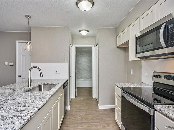 Awesome location backing to a pond and open area! COMPLETELY REMODELED! New granite counters in kitchen and bath! Gorgeous tile surround in shower! New Carpet! New laminate flooring! New cabinetry! New stainless steel appliances including dishwasher and built-in microwave! New Doors! Fresh paint! New plumbing fixtures! New lighting fixtures! Double door entry to bedroom! Sliding doors to covered patio off living room and bedroom! Utility Closet! Extra storage! PERFECT CONDITION AND LOCATION! Easy access to Highline Canal and I-25.
