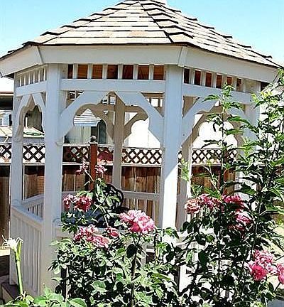 Enjoy the wonderful resort like amenities when you come home to this gorgeous manufactured home in immaculate condition. This bright and cheery, home features coiffured ceilings in both the living room and dining room,family sized kitchen, abundant cabinets,and large pantry. The free standing stove and refrigerator are both included. Owners suite features generous closet, corner soaking tub with separate shower stall, dual sinks and more. Laundry room has storage cabinets.With dual pane windows throughout and efficient central heat and air, keeping this home comfortable is a breeze. Note covered parking,large storage building and gazebo as well as a large covered deck. Some of the great features of this gated community, close proximity to shopping,restaurants and freeways, beautiful landscaping, huge inviting pool, spa, separate saunas, gym, billiards room, basketball court,clubhouse with library, lounge,stage, dining room and commercial quality kitchen available to park residents.