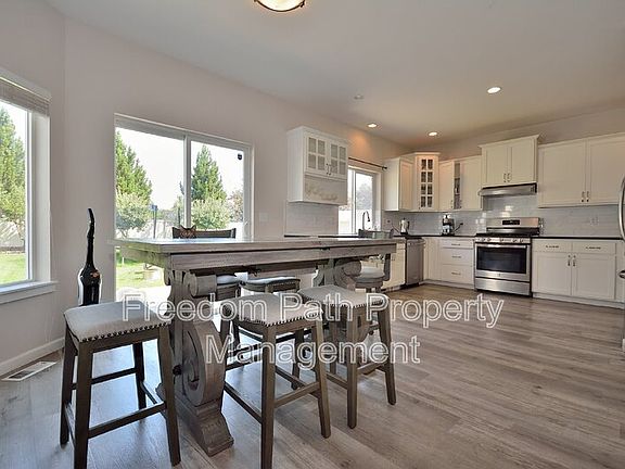 Charming and modern, this beautifully updated 3,587 sq ft two-story home with a finished basement is located in the highly sought-after Coeur d'Alene Place/Bolivar neighborhood. Just steps from the park, you'll enjoy miles of scenic bike and walking trails, along with expansive greenspaces right outside your door. The spacious fenced backyard features a storage shed, greenhouse, fruit trees, and a tranquil fountainperfect for relaxing or entertaining. Inside, the home offers 5 bedrooms and 3.5 bathrooms, along with a dedicated office complete with built-ins for the ideal workspace. The main level includes a formal dining/music room and a cozy living area, while the finished basement provides two additional large flex spaces and a full bath. This lower level offers incredible versatilityideal as a media room, guest quarters, or even a separate unit-style living area within the home. The generously sized master suite includes a bright en-suite bathroom with a soaking tub, separate shower, and private toilet. The kitchen features stylish white cabinetry with plate racks and glass-front accents, adding an elegant touch, and comes equipped with stainless steel appliances including a refrigerator. A washer and dryer are also included. Central air conditioning and a soft water unit ensure year-round comfort. All Freedom Path Property Management residents are enrolled in the Resident Benefits Package (RBP) for $55/month, which includes liability insurance, credit building to help boost credit scores with timely rent payments, up to $1M identity theft protection, HVAC air filter delivery (for applicable properties), move-in concierge service, our best-in-class resident rewards program, on-demand pest control, and much more. Ask us about our Deposit Waiver Program. Pet Details: Pet Screening Required For All Pets.
