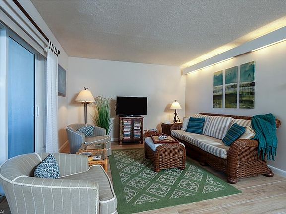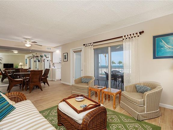 Enjoy this tropical paradise which is all about the beach at this charming 2-bedroom, 2-bath, 2nd floor condominium. Southwestern panoramic views from the lanai, kitchen and living area. Features include newly tiled common areas, comfortable living area with sofa, chairs, flat screen TV, and dining for 4 people. Bedrooms include king bed in one bedroom and two twins in other bedroom. There are private balconies from both the primary and guest bedroom. Wireless internet and cable included for your convenience. Washer and Dryer in unit or there is a large capacity washer and dryer in the common laundry room. Bonita Beach Club is a beachfront, tropically landscaped, gated community located on Hickory Blvd at the very North end tip of Bonita Beach! Offering many amenities, you are sure to never get bored. Amenities include an 80-ft. heated community beachfront pool, fitness center, tennis courts, 4 Pickleball courts, yoga and water aerobics available during season, billiards room, library, social room, project room, game room, lounge, BBQ area, shuffleboard, car wash area, fishing, direct beach access and so much more! All amenities have been renovated and are beautiful design with stunning decor.