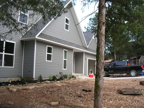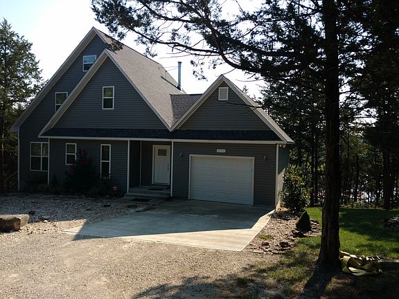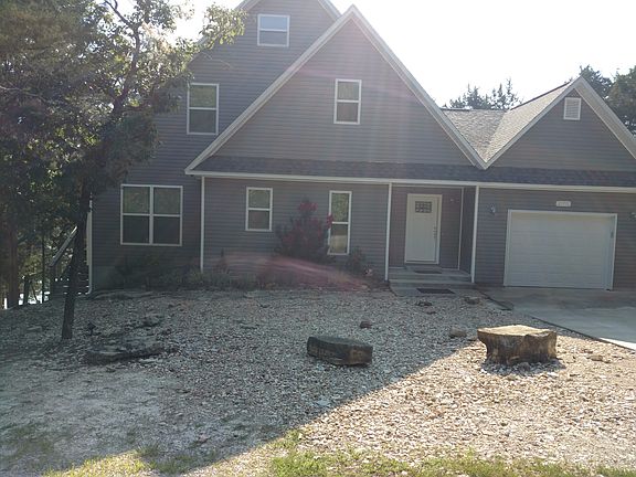 Lake House. Lake front property. Two Bedrooms with capabilities of a 3rd and 4th sleeping area. With Boat Slip in neighborhood dock (included in price and has lift) on quiet cove on Western end of Table Rock Lake. Six miles from Roaring River State Park (trout fishing) and 20 minutes North of Eureka Springs, Arkansas. Close to 2 different marinas. Oak Hardwood Floors upstairs and down. Tile in Kitchen and Baths. Economical, well insulated house. Wood stove heats entire house during winter. 2 H/AC systems cool the house. 3rd floor loft, great for reading, relaxing. 2nd floor loft over looks lower floor. All floors have great view of lake. Large composite deck (12'x40'), partially covered, overlooking the lake. Low maintenance yard and landscaping- gravel on 3 sides of house. Lower sitting area, with fire pit and waterfall. Large basement area with high ceilings could be modeled into game room, more bedrooms, etc. Also a 20'x30' outbuilding- has sheetrock, insulation, interior paint and wired for electricity. Deck on 2 sides facing the lake, part of it covered. Zillow estimate is not close to appraisal value.
