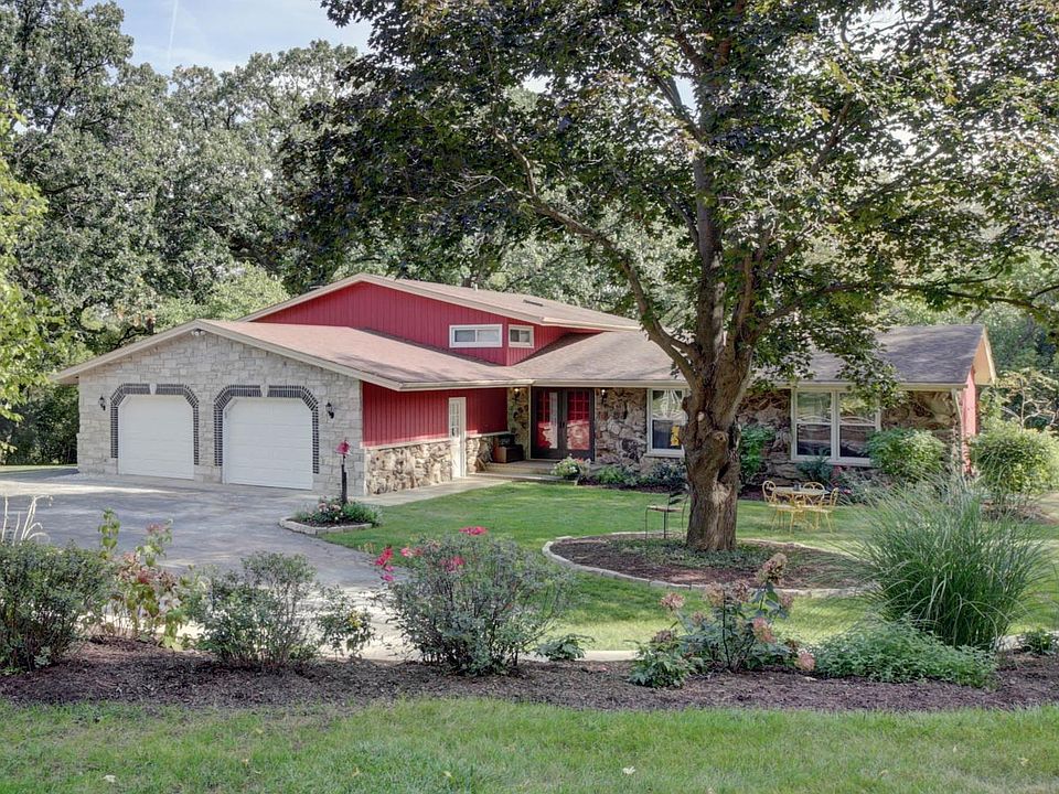 Rare opportunity to own a 3.82 acre private wooded estate with personal roadway entrance. The home is remodeled inside and out and the homesite features over half an acre of separated parking with utility barn equipped with water and electric. The utility barn and parking area is separated from the home by over $100k in professional landscaping, 125 foot valders stone retaining wall and mature pines that make for a versatile and useable property. Outside the home features a beautiful new backyard patio that sis perfect for enjoying is your estate. Inside the home utilizes a 5th bedroom or enclosed sunroom and 3 full baths. Refinished hardwood flooring, huge family room, all newly remodeled bathrooms, solid wood doors, new sewer lines, new garage doors, and much more complete a wonderful living experience. This private estate is 100% tree lined for complete privacy and is one you don't want to miss.