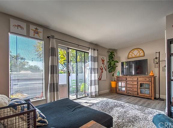 Nicely remodeled single level condo with no one above or below! This home has been tastefully upgraded with new luxury vinyl flooring, newer paint, re-textured ceilings, ceiling fans, six-panel doors, closet mirrored doors, recessed lighting, tall baseboards, barn doors, and distinguished light fixtures. The elegant kitchen has new quartz counter tops, marble backsplash, and newer appliances. The striking master bathroom has a newer shower enclosure, tile walls and tile flooring, and a double sink vanity. The secondary bathroom is equally mesmerizing with a newer tub, tiled shower enclosure, decorative tile flooring, and newer vanity. This home features inside laundry, enclosed patio with vinyl fencing and pavers, storage shed, and 2 assigned parking spots. The Aliso Meadows is close to the Laguna Hills Community Center that includes a large banquet room and a sports complex with a prehistoric themed playground and a skate park! It is also within walking distance of shopping. This beautiful home will not last! It is great for a first-time home buyer or for an investor. HOA includes water, trash, basic fire insurance, and exterior maintenance.