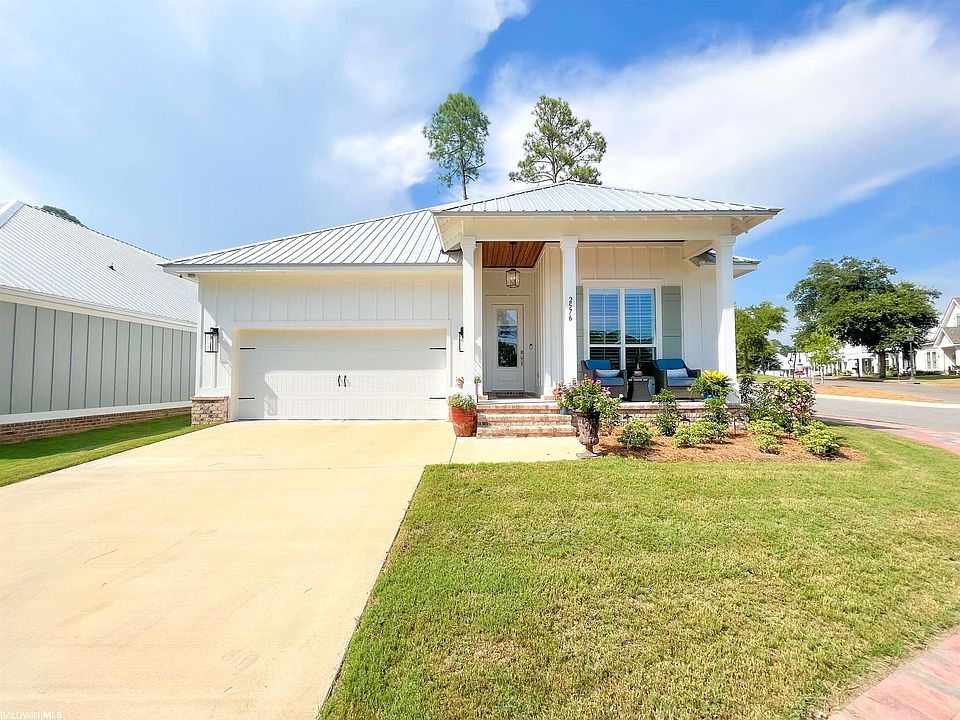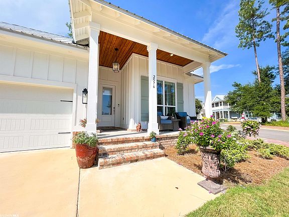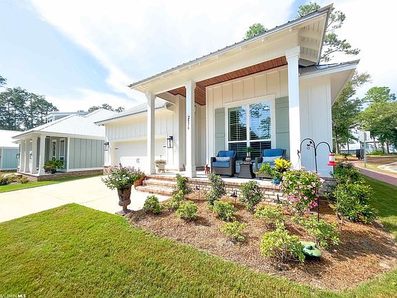 PREMIUM LOT WITH A DIRECT WATER VIEW! Watch the ships and boats go by as you enjoy this perennial water view from your front porch! This nearly new move-in ready, gold-fortified Coastal cottage is just perfect...this peaceful community is situated beside the Intracoastal Waterway and just minutes from the beautiful Gulf Shores beaches! The Carmel A Floor Plan is a 3-bedroom, 2 Bath cottage (1806 square feet). This cottage has a metal roof and hardy board siding painted light, refreshing colors with a 5-zone irrigation system and stained porches. The interior has white-shaker cabinets, custom island with Quartz countertops, shiplap on primary wall and custom ceiling fans and light fixtures. The flooring is LVP and carpet in bedrooms 2 and 3. The owner has added plantation shutters, wrought iron fence, gutters and separate water meter for the sprinkler system. Please check the special features, survey, docs, insurance information etc. under "Documents". Schedule your tour of this perfect home today! Priced right at $599,900! Owner occupied but easy to show!
