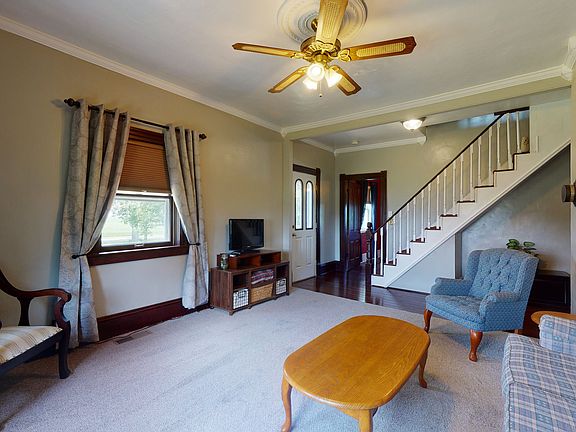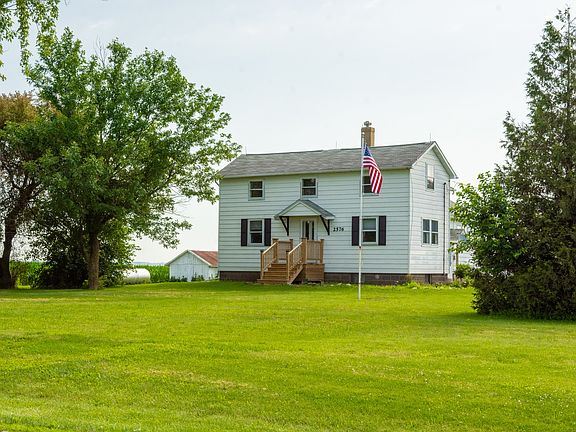 This historic farmhouse combines gorgeous rural views, historic charm, and major updates. The entire house sits on an updated foundation, making for an exceptionally nice basement. The house features recently replaced high efficiency furnace. The large kitchen features new hand-scraped look hardwood floors, a full complement of modern appliances, and white subway tile backsplash. The shared bathroom features a stunning mosaic tile floor and vintage vanity and clawfoot tub with full shower assembly. There is also a first floor bedroom suite with adjoining 2nd full bath. The 2nd floor features two additional bedroom (but not designed for tall people). There is a detached garage, chicken coop, and shed on the property. See HD photo gallery and 3D virtual tour!