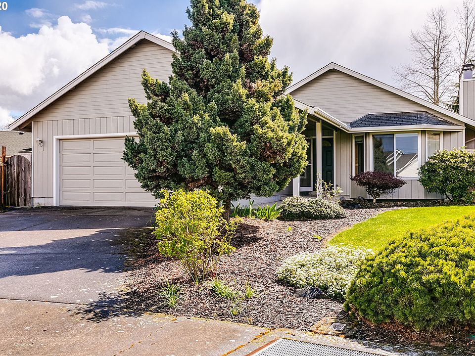 Private 3 bed, 2 bath home in quiet cul-de-sac neighborhood. Newly painted inside and out, new carpet in living room. Custom covered deck in fenced back yard, synthetic lawn & decorative downspouts. Tons of built in storage in the garage. 25 rose bushes throughout the yard. Corian counter tops in kitchen. New vinyl flooring in front bath. Vaulted ceilings in living room, with fire place & bay window. Close to shopping just down the street. This conveniently located home wont last long!