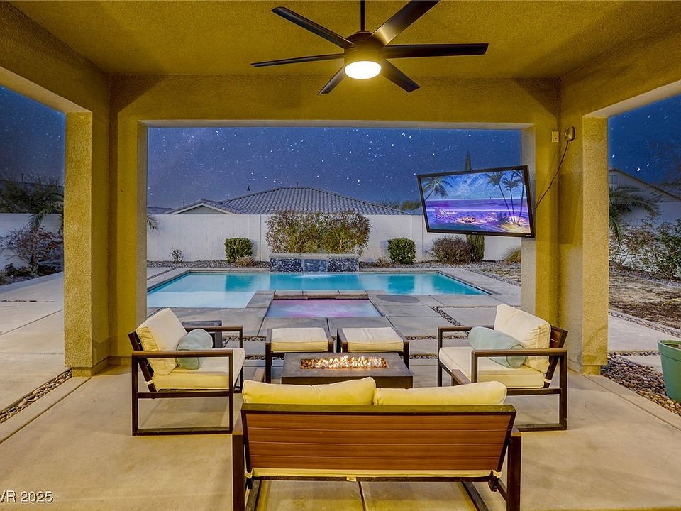 Stunning, gated, one-story Toll Brothers home in Inspirada! Thoughtfully designed with gorgeous upgraded lighting, crown molding, tile floors and abundant natural light. The open kitchen features quartz counters, walk-in pantry, double ovens, 5-burner cooktop, touchless faucet, undermount sink and soft-close cabinets. Two triple sliders lead to a backyard oasis with app-controlled pool, elevated private lot, large patio for entertaining and a gated dog run. The highly upgraded primary suite boasts another triple slider to the backyard, spa bath with walk-in rain shower and an amazing custom closet. This home also includes, tankless water heater, water softener and LID paid in full. Located in a beautiful community with parks, pools, and walking trails!