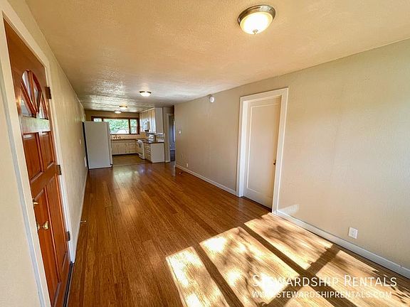 Nice South Eugene home in a quiet neighborhood. This home features hardwood floors in the living room, large backyard with patio, and all appliances including washer/dryer. Residents are responsible for all utilities. *Properties will only be shown to approved applicants* NO APPLICATION FEE!! Back Patio Back Yard Carpet Close To University Of Oregon Driveway Electric Heat Hardwood Floor House Pets Allowed Quiet Neighborhood Vinyl Windows Washer & Dryer In Unit Yard Care Provided