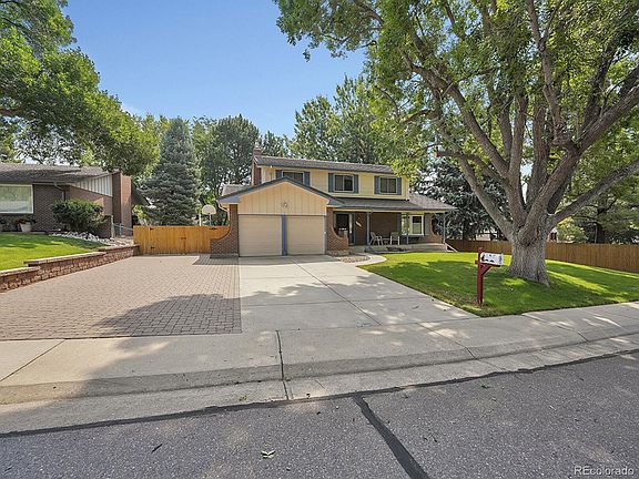 This is the ONE! Outstanding traditional two-story just steps from miles of trails and open space at Westgate Park and Bear Creek Greenbelt, and 5-minutes from Carmody Rec Center! Pride of ownership abounds in this picturesque neighborhood, ready to welcome you to your forever home. From the spacious front porch, perfect for a porch swing, to the oversized driveway with room for four guests or an RV, enjoy an effortlessly inviting atmosphere inside and out. Original hardwoods and a traditional staircase welcome you into the foyer, as a generous bay window fills the living room with natural light. Share a meal in the formal dining room overlooking the backyard, or whip up a masterpiece in the kitchen, featuring an abundance of real wood cabinetry and plentiful counter space. A bright bay window illuminates the eat-in area, seamlessly connecting the kitchen and family room—ideal for entertaining with easy access to the expansive patio and backyard. Upstairs, the primary suite is a peaceful retreat, featuring a beautifully renovated en suite bath. A skylight illuminates dual closets and a spacious granite-clad vanity for two, as new tile flooring and a striking glass-enclosed shower showcase cool earth tones, accented by playful penny tile. Three additional upstairs bedrooms share a full bath, newly renovated in bright, airy shades of sand and nickel. Host the big game in the basement, featuring a sprawling bonus room, walk-in wet bar with loads of storage, and a convenient half-bath! The backyard is a private, green oasis, ready for summertime soirées and year-round enjoyment. A spacious covered patio sets the stage for lively gatherings, while an open patio with a basketball hoop is perfect for friendly games of HORSE on breezy afternoons. An extended brick patio offers the ideal spot for a firepit or additional dining space, all framed by perennial flowerbeds along the back fence. Ideal Lakewood location near shopping, dining, golfing galore!