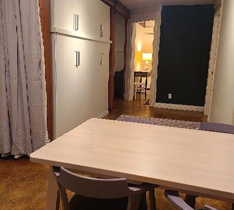 Excellent furnished one bedroom garden level 650 sqft suite in Kitsilano. A very quiet corner of Kits along the Trafalgar bike path. There's a three block walk to the beach or to local grocery stores, liquor stores and shops. This suite can sleep up to 4 people with a queen bed in the bedroom and a comfortable double wallbed in the den area. The kitchen is well equiped and is a good size with a four person dining table. There is convenient access to laundry. Included is laundry, WiFi, heat and electricity. Rental is a minimum of a month. Dogs may be considered, however it would need to be a quiet dog as other people work in the home. Please email us with any questions that you have. We're happy to help you get set-up here in Kits. Minimum 1 month lease but longer is good as well. Fully furnished suite includes WiFi, utlities. Laundry is not in suite but just 10 steps away and is not shared with anyone else. There is secured bike parking. A dog may be considered if it's a good fit for the home and other tenants and isn't loud as others work in the home. There is street parking only.