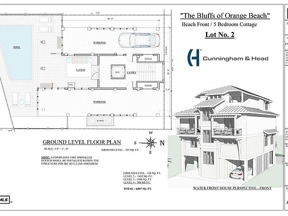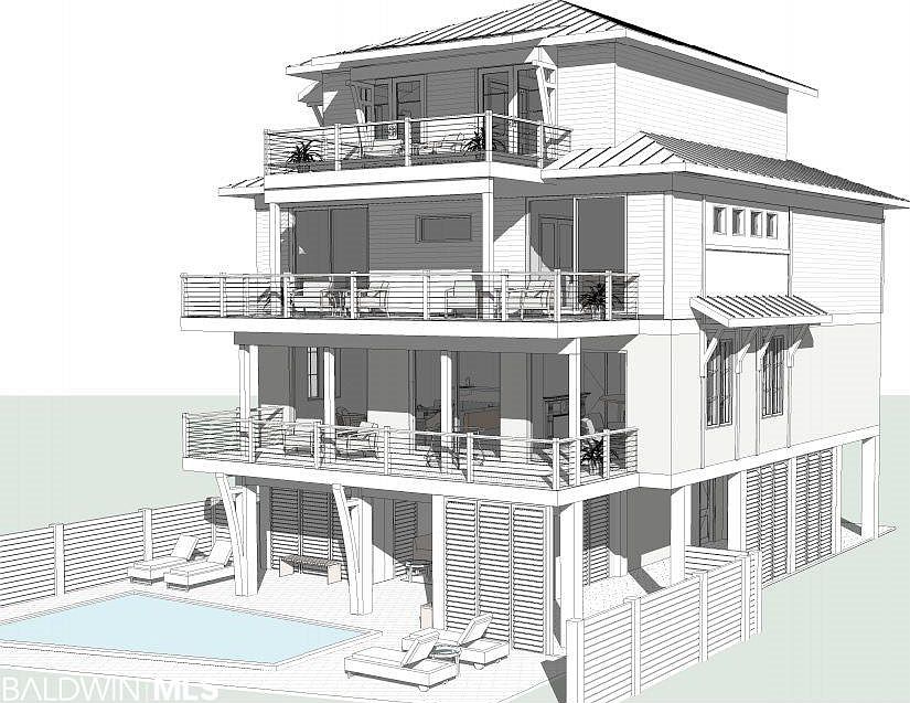 The Bluffs is an exclusive new beach front development in Orange Beach! Lot 2 is directly Gulf Front and will have five bedrooms and five & 1/2 baths. Each lot at The Bluffs will feature gold fortified construction by Phil Harris, a top floor master suite, private gunite pool with lanai & grilling area and 1 parking space for each bedroom along with fiber optic internet capability. Each home will have wood floors throughout, an elevator to all floors, impact resistant doors & windows, solid core interior doors, metal roof, hardi board exterior, outdoor shower & multiple lockable storage closets. Kitchens will offer a large island, quartz counter tops, pantry, custom cabinetry with Wolf/Sub-Zero/Thermador appliances. There will be a large utility/laundry room, wet bar, 10' ceilings on main level, 9' ceilings for bedroom levels. Baths will feature tile floors and showers with quartz counters. The gulf-front residences will feature a private dune walkover and all other residences will have a community dune walk-over. Each home in The Bluffs will offer one parking space per bedroom plus additional community parking for guests. The Bluffs will require a 3 night minimum rental. The Bluffs are unfurnished, photos and drawings are representative.