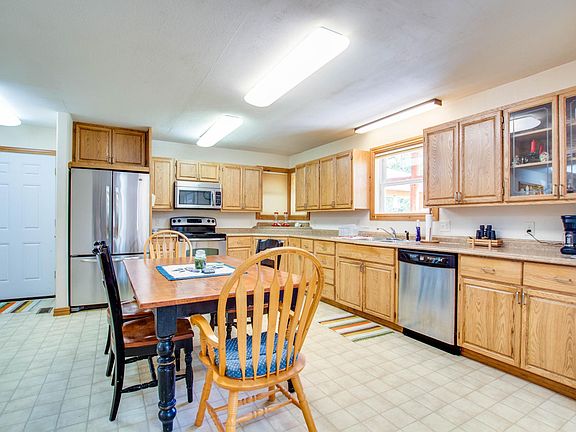 This property has everything you would want in a country home! The 3+ acre lot is heavily wooded but small enough to be manageable, is located next to state land, and very close to Bagley and Clearwater Lakes. The exterior has split log siding with a great front porch, and a carport in front of the attached garage that features a workshop. There is also a matching detached garage with an open loft area and a separate metal storage frame. On the inside, the quality custom cabinets were made with wood that came from the acreage, making it extra special, and there is a four-season room to enjoy the outdoor views!!! Whether you make this your home or your country cabin, this property will give you the peaceful life you are looking for!