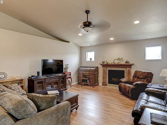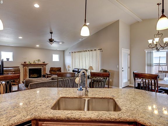 Fantastic newer home on large corner lot! With 1588 sqft, 3 bedrooms/ 2 baths this open floor plan offers a very spacious living area with vaulted ceilings, plant shelving, cozy fireplace, beautiful wood laminate floors and high ceilings throughout! The large kitchen includes a large island with undermount sink, granite counters, lots of cabinet space, stainless dishwasher, gas range and microwave! Great home!