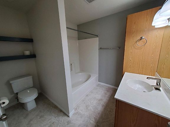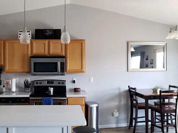 Check out this beautiful, modern, well cared for twin home just off of Amber Valley Parkway available June 1! An open upstairs floorplan welcomes you in with a modern kitchen island and vinyl plank flooring throughout the living area. Additionally, upstairs you will find a large deck overlooking a FULLY fenced backyard , a spacious master bedroom with a walk in closet and attached bathroom with oversized tub and tile floors. The lower level features 2 bedrooms, a bathroom, a family room, laundry room with washer and dryer, and additional storage under the stairs. Don't forget about the 2 stall garage and bonus attic storage! This house will be the perfect home for you and your fur babies and will not disappoint when entertaining guests. Located within walking distance of Sanford, Costco, and numerous bars and restaurants. Tenant responsible for all utilities, lawn car, and snow removal