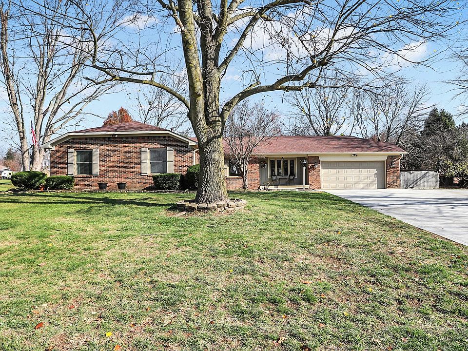 Nearly 2000 SF, 4 BR, Brick Ranch on Over 1 Acre Corner Lot in Center Grove, Walking Distance to Schools! Updated Kitchen with Pioneer Solid Cabinets, Hard-Surface Corian Countertops, Farmhouse Sink, Butcher Block Island Addition, Updated Lighting, and NEW Stainless Steel Appliances - including a Top-of-the-Line Gas Stove! Open Concept Great Room with Custom Mantle Over Wood-Burning Fireplace. Relax in the Sun Room or Take a Dip in the Hot Tub with Complete Privacy while Overlooking the Large Corner Lot Secluded by Mature Trees. Step Out on the Custom Stamped Concrete Back Patio; yet another serene spot for you to enjoy! 6' Privacy Fence with Two Double Gate Access and Walking Gate at the East End of the Property. Luxury Waterproof Laminate Flooring Throughout with New Baseboards. Completely Remodeled Bathrooms with New Plumbing, Vanities, Sinks, Tub/Shower, Fixtures, Toilets, and Lighting. Primary Bathroom with Custom Tile Shower and Tile Flooring. New Concrete Driveway with Extended Side Parking (Perfect for a Recreational Vehicle or Boat - NO HOA) and Drive-through to Backyard. PLUS a New Walkway and Front Step. Oversized 2-Car Garage with Keyless Entry and Additional Storage. Exterior Flood Lighting Added on all sides of the home. Washer/Dryer Included. Updated Interior and Exterior Paint. Roof 2016. Over $100,000 in Upgrades!! This home has so many desired features! This is a definite MUST SEE!!