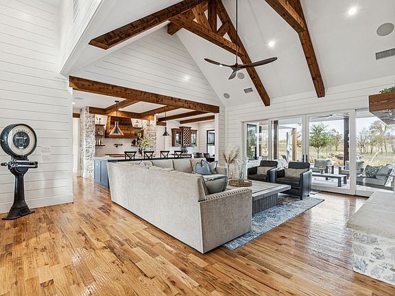 Discover an extraordinary estate in the heart of Celina, offering unmatched privacy and sweeping panoramic views. This expansive property is anchored by a beautifully crafted modern farmhouse featuring 4,629 square feet of refined living space and just under 6,500 square feet under roof. Custom finishes, generous living areas, and walls of windows throughout the home frame breathtaking views of the surrounding landscape.