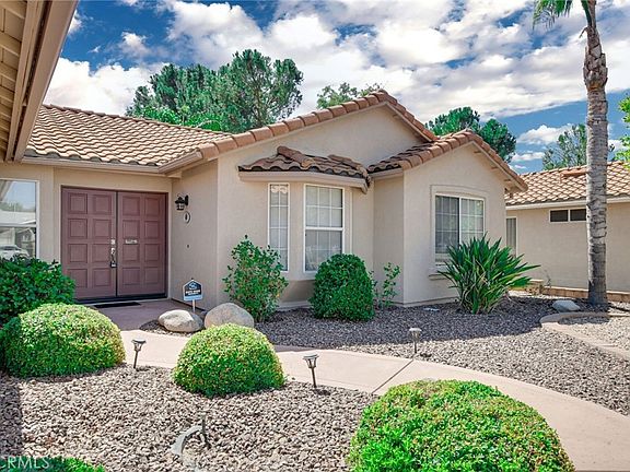 This lovely home in the ever popular 55+ golf community of Seven Hills in Hemet sits right on the golf course with gorgeous views from almost every room. With a beautifully landscaped, easy care front yard, you'll appreciate the timeless curb appeal and low maintenance as you head to the front door. Once inside, the first thing you'll notice are beautiful hardwood floors laid on the diagonal all through out the public areas of the house that visually expand the light filled open floor plan. The living and family rooms are back to back and share vaulted ceilings, golf course views, light filled spaces and a dual see through fireplace with mantels on each side and built in art display niches. The kitchen features gorgeous granite counter tops, a garden window, tons of cabinet space, stainless steel appliances and a breakfast bar and is open to the family room. Across from the living room is the formal dining area. The master bedroom also share the golf course views and you can hear the soothing sound of the water feature on the patio as you drift off to sleep at night. There are also 2 closets, on a walk in and a master bath with dual sinks and a beautifully tiled walk in shower. The middle guest bedroom features a window seat, all bedrooms have ceiling fans as do the living and family room and the guest bath has a tub and shower. The spacious covered patio looks out over the rich green golf course and is enhanced by a trickling water feature. This home has a 3 car garage and is in move in condition. Fees for clubhouse, pool, spa, golf course are optional and separate.