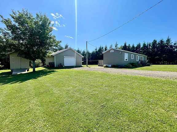 Located just a short drive from Summerside and sitting on a 1 Acre partially treed lot, this 2 bedroom mobile home with 22x24 wired double car garage offers both privacy and convenience! The open concept layout, large rooms and vaulted ceilings flow together perfectly for a warm and inviting space to entertain. This home has been well cared for with vinyl windows throughout and an approximately 5 year old roof. No need to worry about oil bills here, as the home has been converted to electric heat with a heat pump. In addition to the large garage, there is also a newer 8x16 Shed included in the sale. Backyard is very private and would be perfect for a pool off the large deck!
