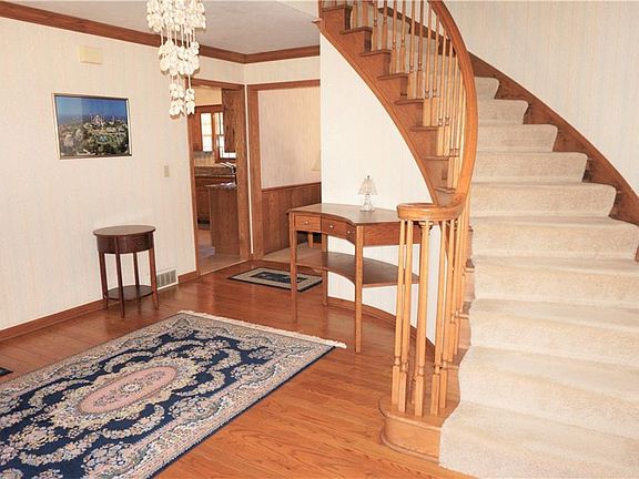 Stately center hall colonial. Entry at front porch to a large foyer with hardwood floor and a grand curved oak staircase. Formal dining room, living room, family room, office, kitchen, morning room, laundry and half bath on 1st fl. 4 bedrooms and 2 full baths on 2nd fl. Bay window in living room. The bay window door combo in the sunny morning room leads to private fenced patio area. French doors in family room also lead to patio. Cozy fireplace in family room between custom wooden bookcases. The spacious kitchen has porcelain floor and granite countertops. Bathrooms on 1st and 2nd floor have granite counters and porcelain as well. 1000+ finished sq ft in basement includes a 5th bedroom, a full bathroom with jacuzzi tub and separate shower, an additional office/study, & living/rec room. Large, manicured backyard bordered by trees. Well maintained, lovingly cared for one owner home in Bath near wooded Metro Parks.