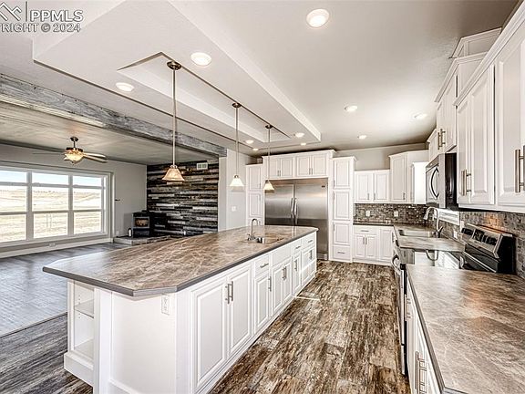 This adorable home is clean, well-updated, and move in ready! It has ample room for your family on the main level with the opportunity to expand your square footage on the unfinished second level. You'll notice the open floor plan and finishes have been carefully selected, with a kitchen that will have your guests in awe! The 1440 square foot building can be used as a shop (as it has concrete floors), hay storage, or convert to livestock use. The 40 square, fenced, and very usable acres also has a solar well located east of the home to water your livestock out in the pasture. This location cannot be beat! Located just minutes from the accredited Elbert School, minutes from shopping and activities in Elizabeth, and paved access to either. so schedule your appointment asap!