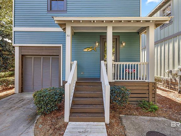 Welcome to Fish Camp! Unit 30 is an adorable 3 bedroom, 2 1/2 bath cottage. Off the open front porch, walk into the kitchen and dining room. Kitchen equipped with stainless steel appliances and plenty of cabinet space. Hardwood floors throughout lead you to the living room with a view of the screened porch and pool. Upstairs you will have 3 bedrooms. Master bedroom has a sitting porch, walk in closet and en suite bathroom with double vanity and tiled shower. The screened in porch off the living room is large and accommodating. It adjoins an open porch perfect for grilling. There is a single car garage with an enclosed storage room. Many upgrades have been made to the home including new HVAC system,new roof and many more. Fish Camp offers 2 pools with one being right behide Unit 30 and 2nd pool on Wolf Bay. It is a gated community, with a lodge, fishing pier and gazebo. All measurements deemed important to the buyer must be verified by buyer or buyer's agent within the due diligence contingency period. .