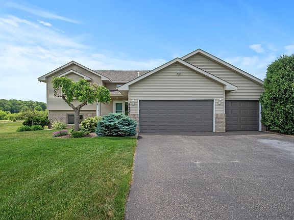 Welcome to this exceptional home situated on 2.5 acres in Zimmerman! Pride of ownership shines throughout this 4 bedroom, 2 bath home with many upgrades. The spacious main level features custom kitchen cabinets, vaulted ceilings, and lots of room for entertaining. The lower level boasts a huge family room with a walkout to the yard that backs up to an abundance of wildlife. Enjoy sunsets on the brand-new cedar deck in the summer, and cozy up to the warm gas fireplace in the living room in the winter. Sleep well at night with a whole home surveillance system. Updated mechanicals, a new roof in 2022, a large 3-car attached heated and insulated garage, a beautiful lawn with all brand new irrigation, and more! The convenience of being close to shopping and restaurants. Don't miss this one!