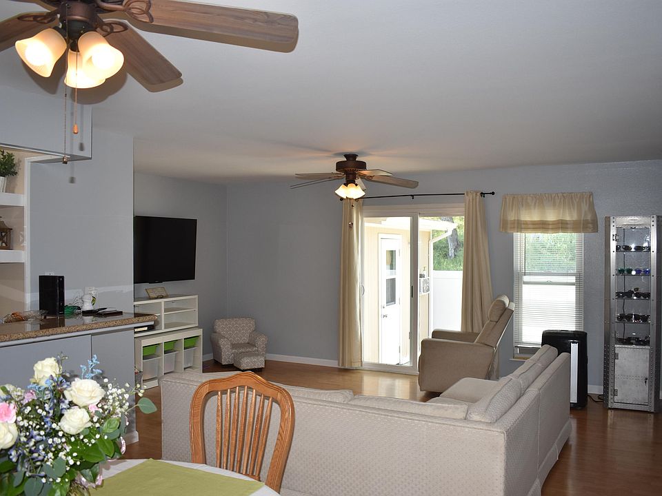First 2 months of HOA fees PAID!! Welcome to this little gem in Laguna Hills. Nestled quietly in the back of the complex you will find Unit #168. With trails along the front of this home and The Laguna Hills community center just a short walk away. This 2 bedroom 1 bath is sure to charm you. The owners added a few extra touches to this unit that you will not find in other units. Added storage above the washer and dryer gives you the room you need for those costco trips. Added coffee bar gives you extra storage plus adds a little charm to your dining area. The master bedroom features his and hers closet storage shelves and drawers. This home has recently been painted and has ceiling fans in both bedrooms and living room. Granite countertop in kitchen, New front door, and new furnace. Outdoor storage can be used as extra room or an office. Refrigerator , washer and dryer to stay with home. Come and take a look for yourself, you will not be disappointed!