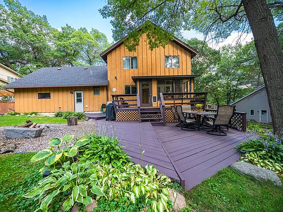 Welcome to this unique beauty on a large lot in south east Saint Cloud. The lot is blanketed with mature trees for the view you would expect in the woods. The exterior has a big back yard for all the games as well as a large refinished deck that leads into a beautiful three season porch that overlooks the backyard oasis. There is a large 2 car garage as well as a parking spot for the guests. The unique floor plan offers many gathering areas including a living room with cozy fireplace, den/sitting area, family room in the lower level with another gorgeous fireplace and a wet bar for all the entertaining you want. This floor plan has many unique features like beamed ceilings and open staircase to the upper level bedrooms. There is too much to list on this one, come take a look today!