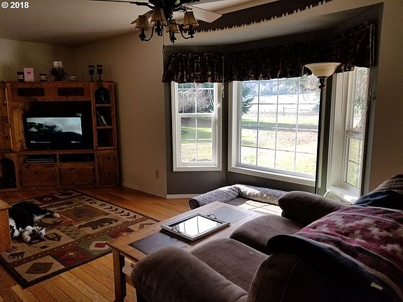 Stunning horse property on 5.07 pristine acres with views of surrounding hills. All level, fenced and cross fenced pastures with newer barn, additional stalls, 3 car detached garage plus RV garage with 12 ft. door. Upgraded newer single level home with wood floors, vinyl windows, large rooms. Lots of light. Relax on the expansive deck and enjoy the peace and tranquility. Must see. This is "move-in" ready.