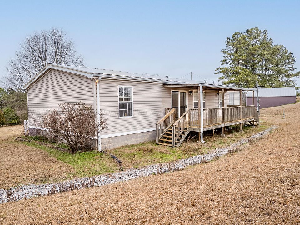 Crane Hill (Smith Lake Area) A 3/2 manufactured home on approx 11 acres near Rock Creek Marina w/detached garage. What an excellent opportunity for a lakefront owner to have recreational acreage or additional storage. This is beautiful Alabama pasture land. You are surrounded by large parcels of land in a nice private setting. A covered deck overlooks the acreage on the rear of the property.