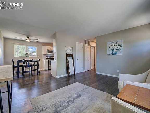 Charming, ranch style home Stratmoor! This sweet home features three bedrooms, one bathroom, one car garage, large front yard and fully fenced back yard. Beautifully updated kitchen and bathroom! Kitchen is nice and spacious and also has a great breakfast nook. Family room has plenty of space, with wood laminate flooring and tons of natural light! Easy access to Fountain Creek Regional Trail, I-25, lots of shopping, and close to Ft. Carson and Pikes Peak Community College!