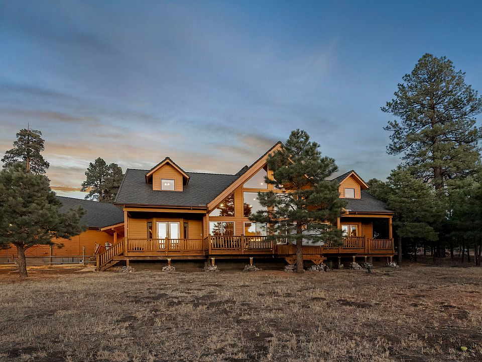 Welcome to the perfect cabin in the woods situated on over 5 acres. National Forest just across the street so bring your motorized toys! The estate has everything the avid outdoorsman is looking for, with an upscale vibe. The 3,593 sqft, 4 bedroom, 4.5 bathroom home is just 10 min south of Flagstaff, and has the most stunning terrain. Plenty of room for your horses to roam, or to simply claim as your own. Walk through the front door, and you are immediately greeted with floor to ceiling glass windows framing the mountain landscape. The main living area has hardwood floors, river-rock stacked fireplace, wet bar, and plenty of room to entertain. The kitchen has robust granite slab countertops, a 6 burner Jenn Air range, stainless steel appliances, and walk-in pantry. No Short Term Rentals.