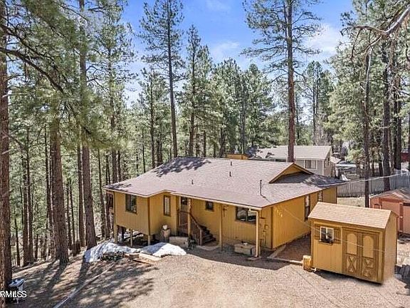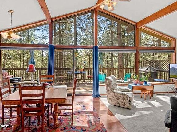 Welcome home! This charming 3 bed, 2 bath home is filled with pride of ownership. The sweeping canyon views are taken in from the Trex decking while the light shines through a wall of windows into the great room. The large mud room is a great place for boots, ski/snowboard equipment and storage. The open kitchen has updated appliances and a breakfast bar. The natural gas stove is sure to keep you warm on those cool mountain evenings. This home and property are well cared for and move in ready. The 2 storage sheds convey as do all appliances. Kachina Village is just 7 miles south of Flagstaff and offers endless hiking trails, a community park, general store and more.