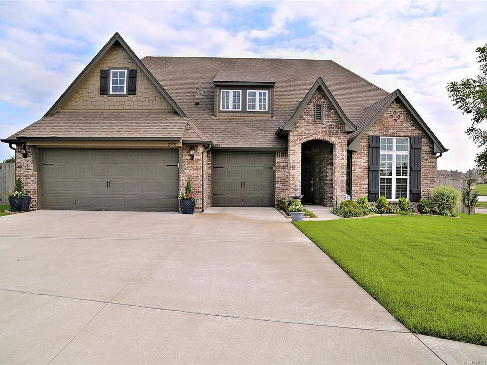 Upgraded Lauren plan on huge corner lot with pond & park views! 5 bedrooms, 3 full baths, 3 car garage! Master suite + 2 bedrooms down, 2 bdrms up plus gameroom. Storm shelter in garage. Wood-look ceramic tile, gas log fireplace, large covered back patio!