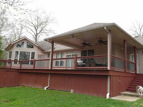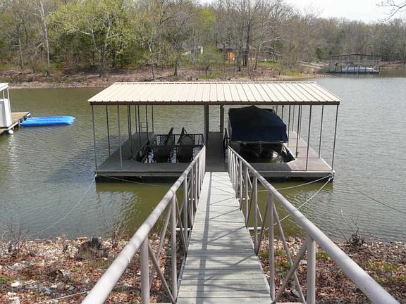 This may be the Grand Lake waterfront home you have been waiting for. $400,000 3 bed/2 bath/2 car garage built in 2006 and shows as new. Hail damaged roof so getting a brand new one. 2 slip dock complete with 2 lifts. Black tall chain link fenced back yard. Large lakeside deck, part covered. Open large kitchen, dining, family room. Master bedroom access to deck. Concrete walkway to dock. Sits in large protected cove with a scenic setting. Come take a look, you will like this home!