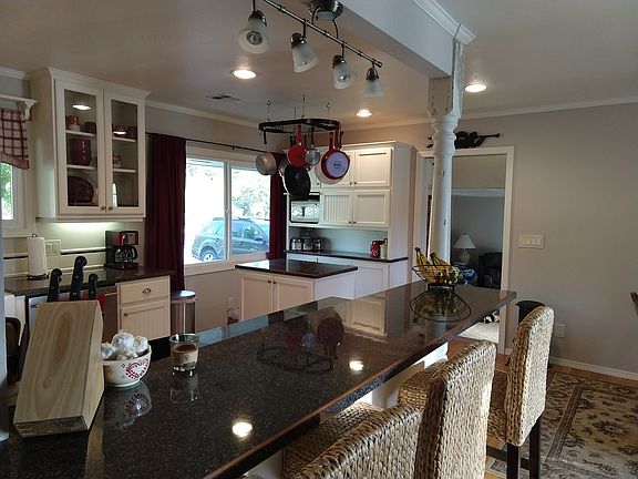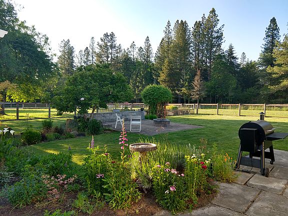 3/2 Mini Farm on almost 2 acres. Beautiful corner property with wonderful large trees, gardens and landscape. 24x20 workshop with new wiring. Two stall barn with paddock. Fenced and cross fenced for a total of three pastures. Updated interior and exterior. New siding, wiring, paint. Beautiful kitchen! Ready for your kids, horses and family fun!