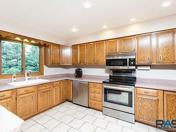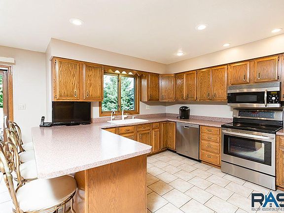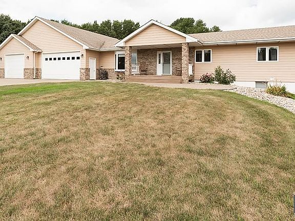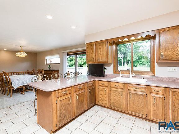 Ranch Walkout On Over An Acre Lot North of Sioux Falls! (one block from city limits). You are greeted by the covered front porch overlooking the beautiful yard. Over 1,500 sq. ft on the mn lvl featuring an open flr plan w/ a lrg kit boasting SS appl, tons of cabs & a breakfast bar. Roomy, sun-filled & sunken living rm & a formal dining rm w/ access to the private deck w/ spectacular views. Highly desired 3 beds on the mn, incl the master ste featuring a ¾ bath. The W/O LL features a fam rm (wired for surround sound), game area, 4th bed, a 3rd bath & has great storage space! The dream 49 x 50 (approx. 6 car plus) garage has it all & will AMAZE you with 2 finished loft areas, a floor anchor & a hoist above, 2-220 volt excesses, a 30 Amp camper outlet, a ¾ bath, epoxy floor & is heated/cooled! If you still don't have enough space with this garage & two lofts, you also have two storage sheds out back! This home has more than everything you've been looking for - come see it today!