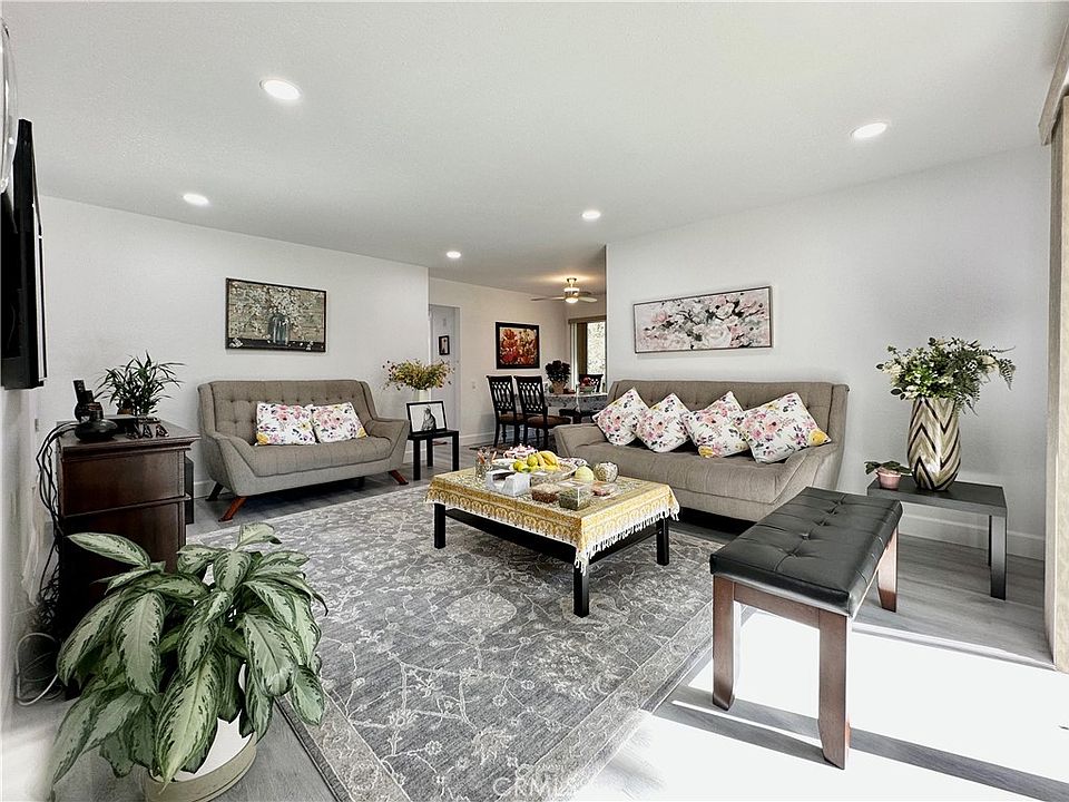 This home has it all! Centrally located, beautifully remodeled, and nestled in a park-like setting, this gorgeous 2 bed/2bath lower level, end unit is a dream! A serene balcony which overlooks the pool and lush green views are just the beginning of the many upgrades to this home. Remodeled from top to bottom, no detail has been overlooked. A beautiful new kitchen with custom white and grey cabinets, quartz countertops, and a custom waterjet marble backsplash create a serene environment in the heart of this home. All windows (including slider) were replaced in 2019 with state of the art dual-pane, energy efficient windows. Luxury wide-plank flooring throughout the open floor plan home creates a neutral palate to add your own pop of color customization. All bedrooms and bathrooms have been impeccably upgraded. Designer upgrades in this smart, single-level floorplan include custom paint throughout, new baseboards, in-unit laundry, new lighting, new hardware, abundant storage, custom closets and new ceiling fan. Additionally included is a covered carport space with additional storage and designated parking space. Units in the complex have been recently re-piped and painted. Flowing with natural light, this elegant home is a peaceful retreat that feels a world away – yet is close to everything!