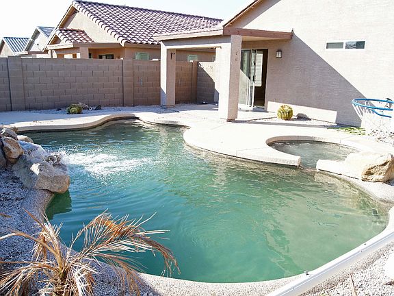 AMAZING VALUE in Buckeye! This 3 bedroom home with pool is the LEAST expensive home in Buckeye! Grab your honey and get on over to this super cute home in the prestigious neighborhood of WestPark. You'll love the heated (Propane tanks!) play pool with spa and waterfall. Large family room / kitchen area has lots of tile and is great for entertaining. Master bedroom has large walk-in closet. Ceiling fans, all appliances and security system convey.