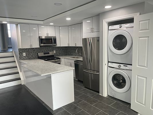 All new renovated top floor apartment! This apartment is a split level with 2 large bedrooms. The master has a walk-in closet. Open convert main floor with all new Kitchen with stainless steel appliances and gorgeous quartz countertops. All new washer and dryer in the unit! New Bathroom with all high end finishes. Split unit AC in every room! Plenty of closets. The apartment comes with a storage room to hold all your bikes, luggage, strollersetc. The private storage room is approx 6ft x 18ft. There is a parking spot for 1 car for additional cost. Text Frank for appointment.