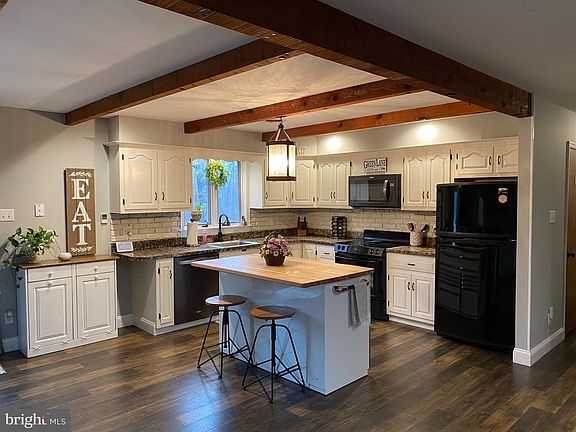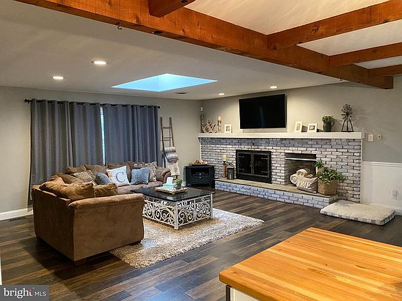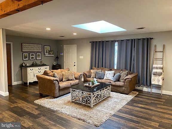 Spacious ranch home on 1.38 acres! This home features 2 over-sized bedrooms and 2.5 baths. Living room, kitchen and dining room all re-modeled! Master bedroom has a walk-in closet and master bath. Living room features a skylight, recessed lighting, and a 1/2 brick wall propane fireplace. Large basement is partially finished with a bar and pellet stove, great for entertaining. The property also has an oversized 2 car garage and two storage sheds. Olde Philadelphia street lamps in the front yard welcome you to your new home!