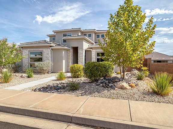 Gorgeous nearly new home in Dixie Springs with a huge six car garage: room for 44 foot RV!! Fabulous private pool on 1/4 acre lot. Brand new flooring and upgrades too numerous to count. Terrific floor plan with two bedrooms on main level, including primary bedroom. Three bedrooms upstairs and separate spacious family room. Enjoy outdoor living with Sand Hollow Reservoir and various riding trails in your ''backyard''. Come and see this amazing home today!