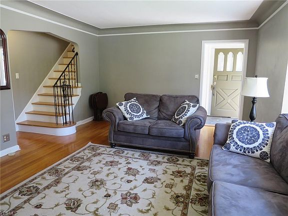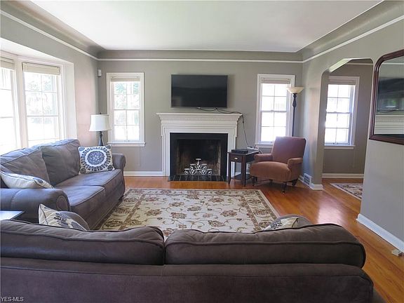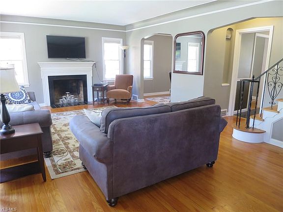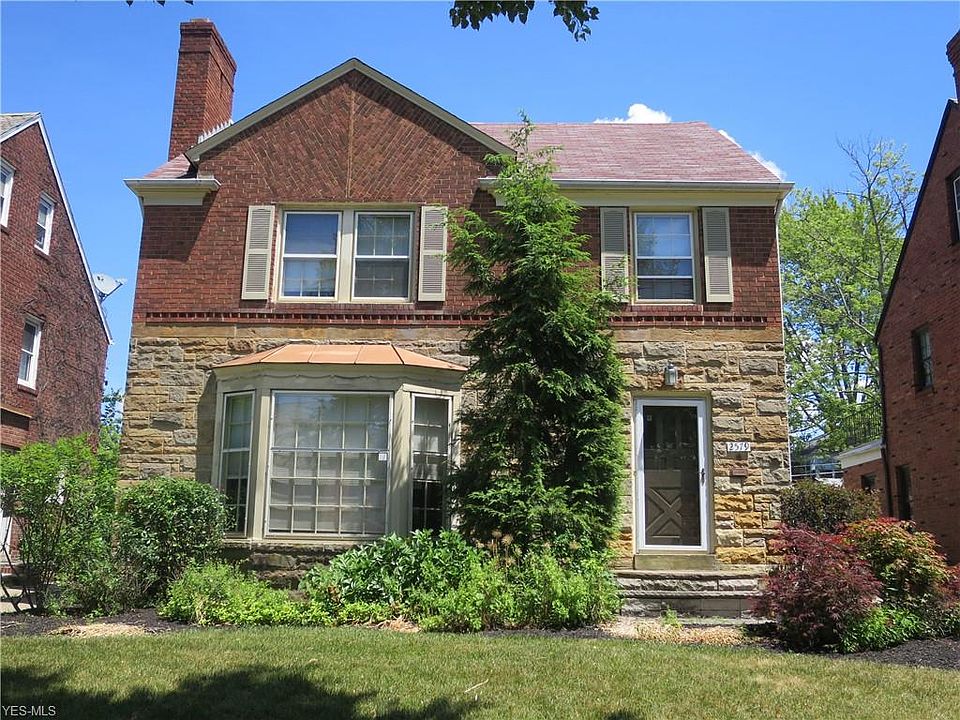 Adorable stone and brick colonial, meticulously maintained and updated by current owner with lovely architectural details including cove ceilings, arched doorways & wood floors throughout. Light filled living room with large bay window and fireplace opens to formal dining room with charming built-in corner china cabinet. Accessed off the dining room is a sunroom/enclosed porch with tile floor and door leading to a patio and the lovely rear yard. The recently updated kitchen offers newer counters, flooring, cabinets and stainless appliances and a separate breakfast room with a wall of built-in cabinets for additional storage. The staircase to the second floor has pretty wrought iron handrails. The second level features a master bedroom with two closests, two more bedrooms, one with access to a second floor balcony and a recently improved full bath with convenient separate tub and shower. There is a fourth bedroom and full bath with luxurious claw foot soaking tub on the third floor. A large finished recreation room with fireplace and wet bar complete this special home. Recent updates include: newer furnace, AC, hot water tank and more. Located within walking distance to John Carroll University and Fairmount Circle. Close to schools, shopping and hospitals with easy access to University Circle, CASE, University Hospitals, Cleveland Clinic and Downtown. Do not miss this delightful home!