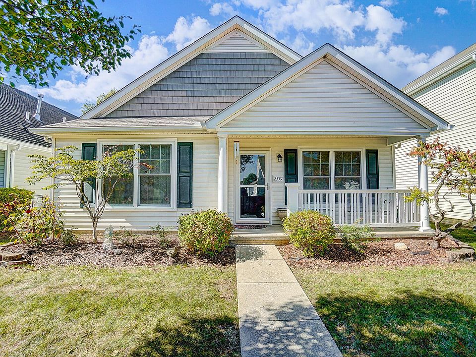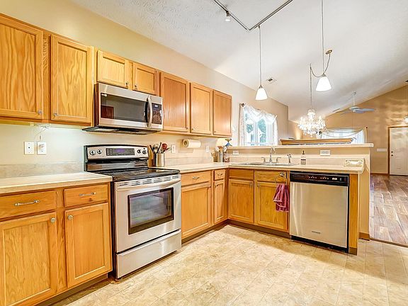 Situated in the back of the Village at Pine Grove subdivision is where you will find this lovely 3 bedroom, 2 bathroom one story property! Open and airy floor plan with cathedral ceiling and newer laminate flooring throughout the living rm, dining rm and bedrooms! The property also offers a fireplace, 1st floor laundry rm with cabinets and full appliance package! Owners suite with attached full bathroom and walk in closet. 2 additional bedrooms and 2nd full bath (w/updated vanity & cabinet). Fully insulated 2 car garage with attic pull down for additional storage! Relax on the rear patio that overlooks a wooded area or take a stroll on the community walking path! The community also features a pond, playground & sidewalks! Lawn care & common area all handled by the HOA for a low fee!